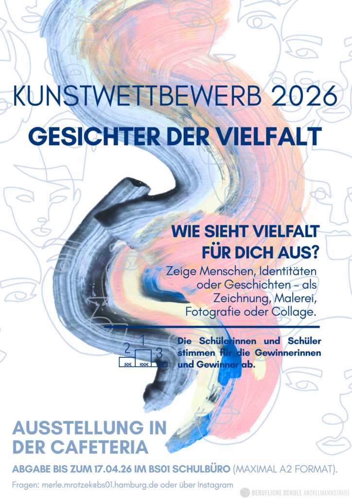 Unter dem Thema „Gesichter der Vielfalt“ sind alle Schülerinnen und Schüler der BS01 eingeladen, ihre eigenen Perspektiven zu zeigen. Ob Menschen, Identitäten oder persönliche Geschichten – Vielfalt kann auf viele Arten dargestellt werden.